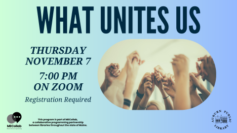 Come together with other Mainers for this virtual program where we’ll focus on the many wonderful things that we share with each other. This isn’t the time for political debate, so please leave your politics at the door. This is time to come together to discover what unites us.